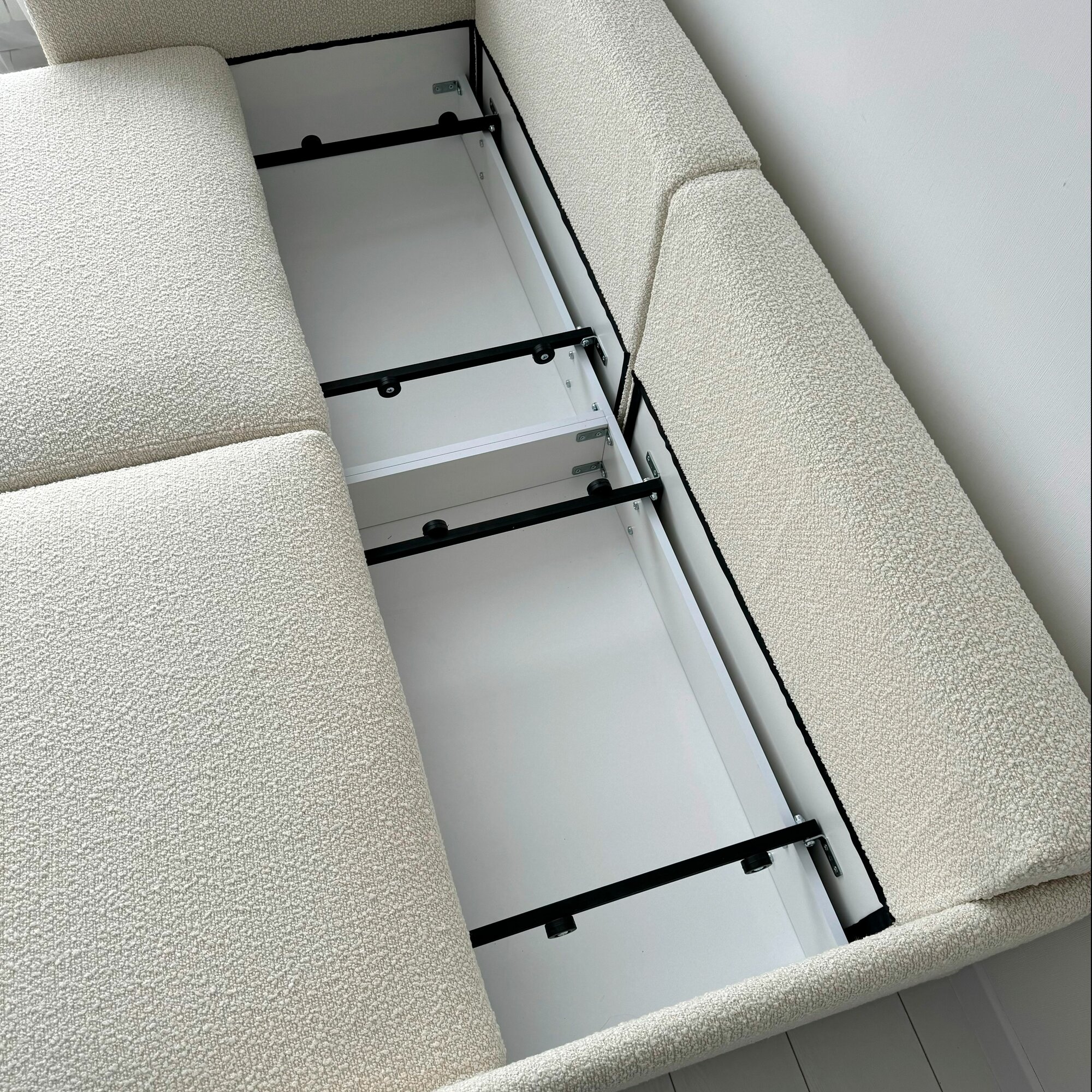 | Особенности | модульный, пружинный блок, раскладная конструкция, с подлокотниками, съемный чехол, ящик для белья |