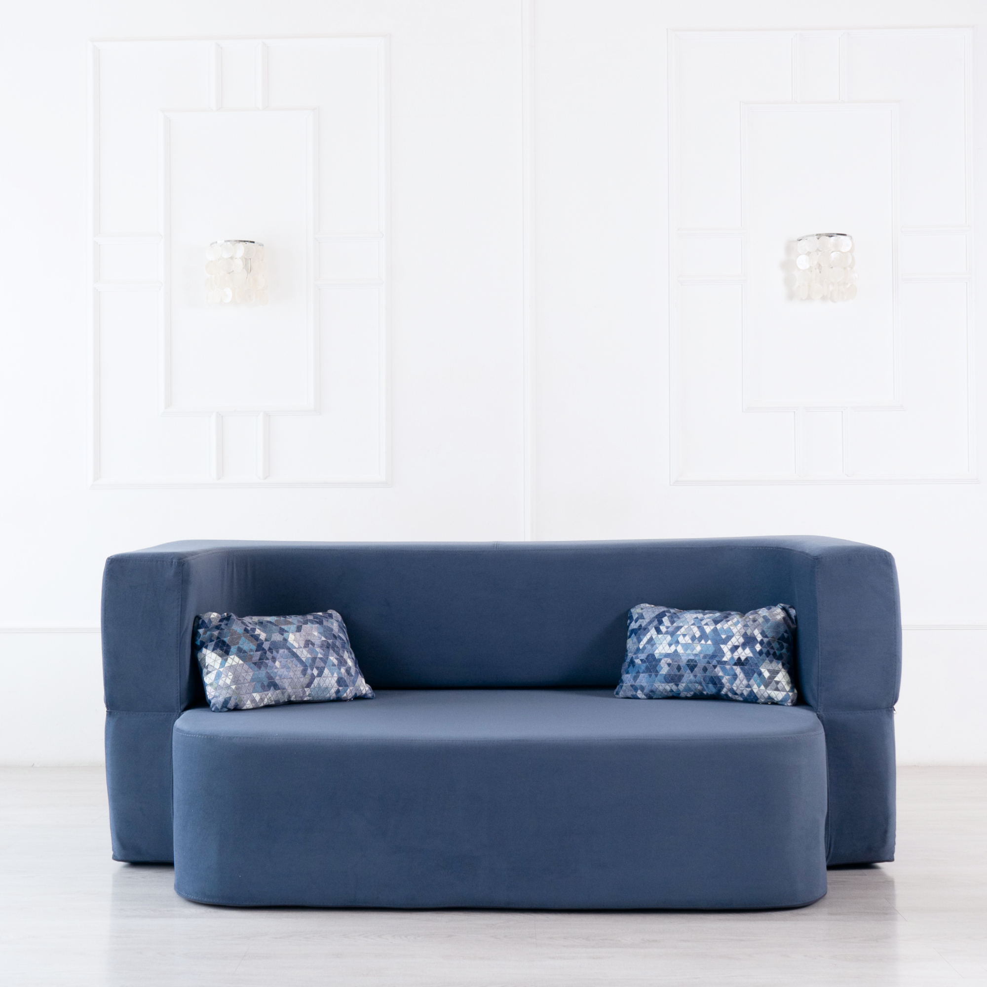 Купить Диван раскладной двухместный Дадли Лайт 195*105*80 см, трансформер, бескаркасный, со спальным местом 195*130 см, синий