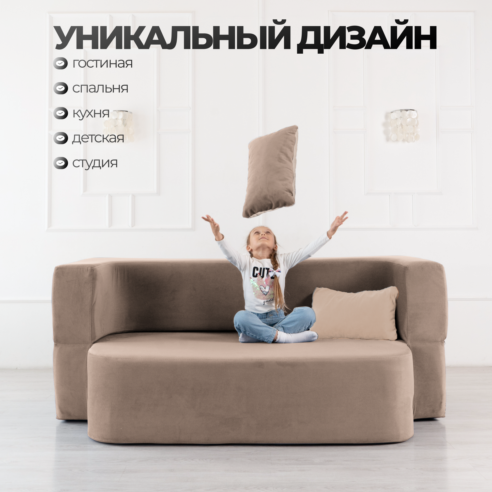 Купить Диван раскладной двухместный Дадли Лайт 195*105*80 см, трансформер, бескаркасный, со спальным местом 195*130 см, бежевый