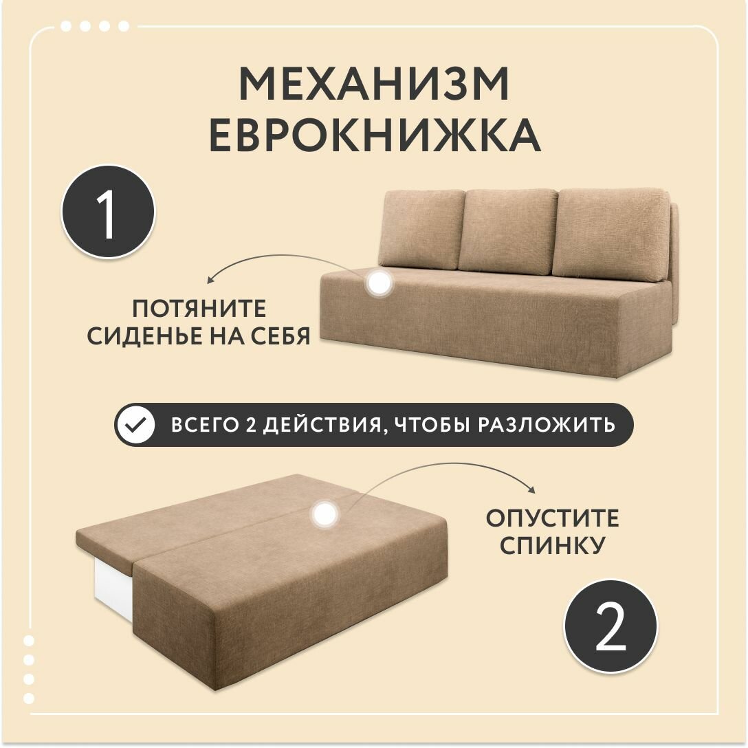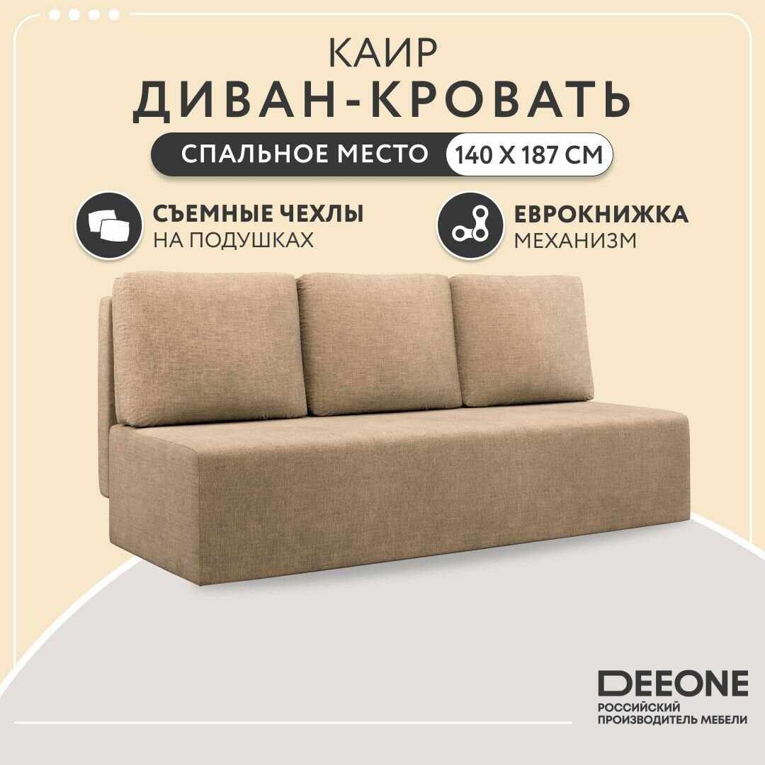 Диван-кровать Dee One раскладной прямой Каир / Консул / Крит, еврокнижка, рогожка, 187x87x84, с ящиком, бежевый