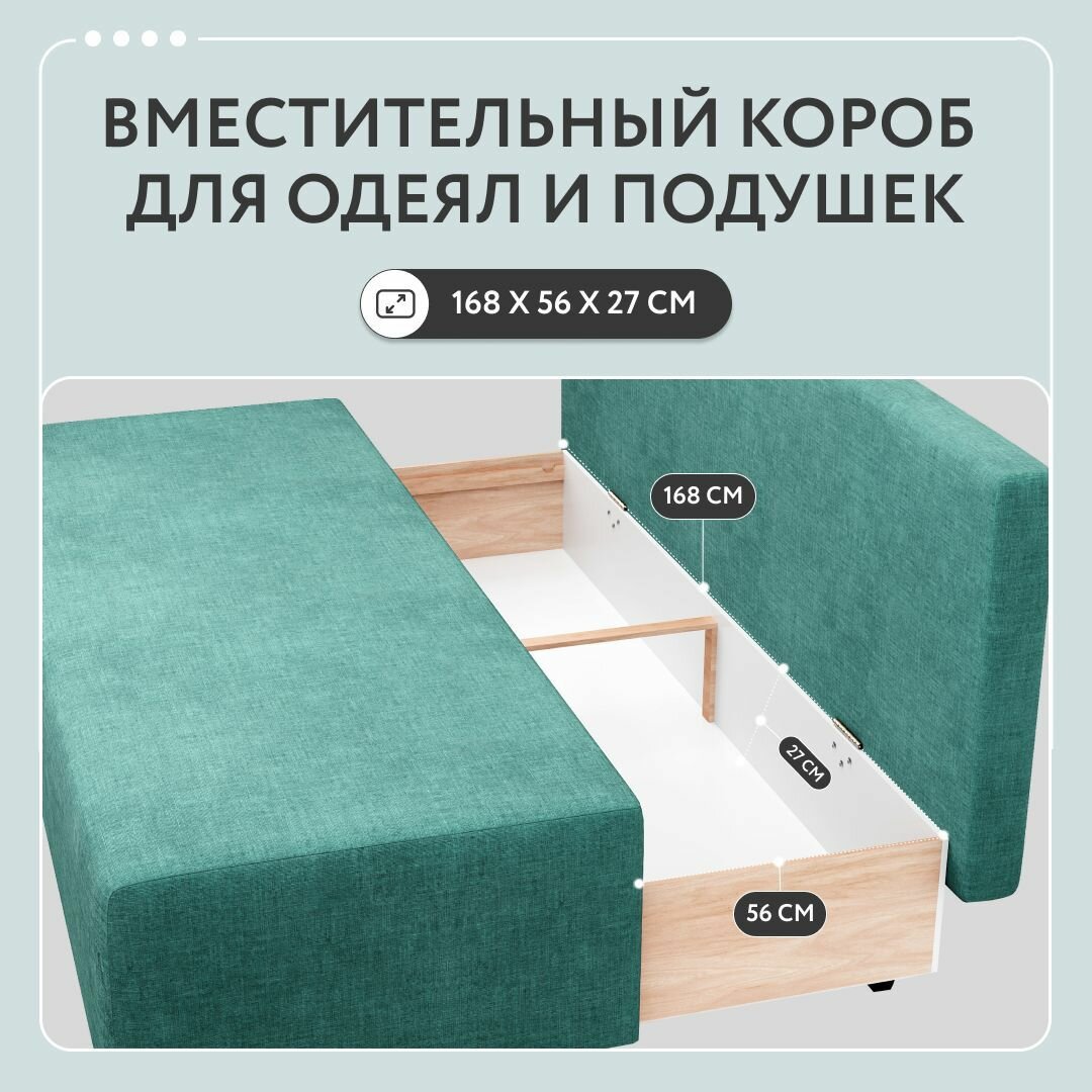 Диван-кровать Dee One раскладной прямой Каир / Консул / Крит, еврокнижка, рогожка, 187x87x84, с ящиком, бирюзовый