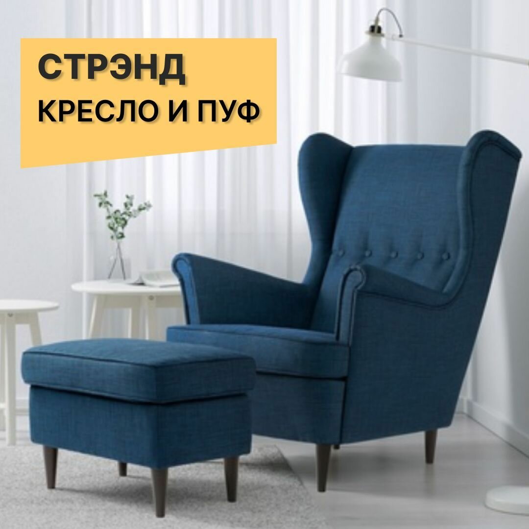 Кресло и пуфик икеа страндмон (стрэнд), рогожка, синий