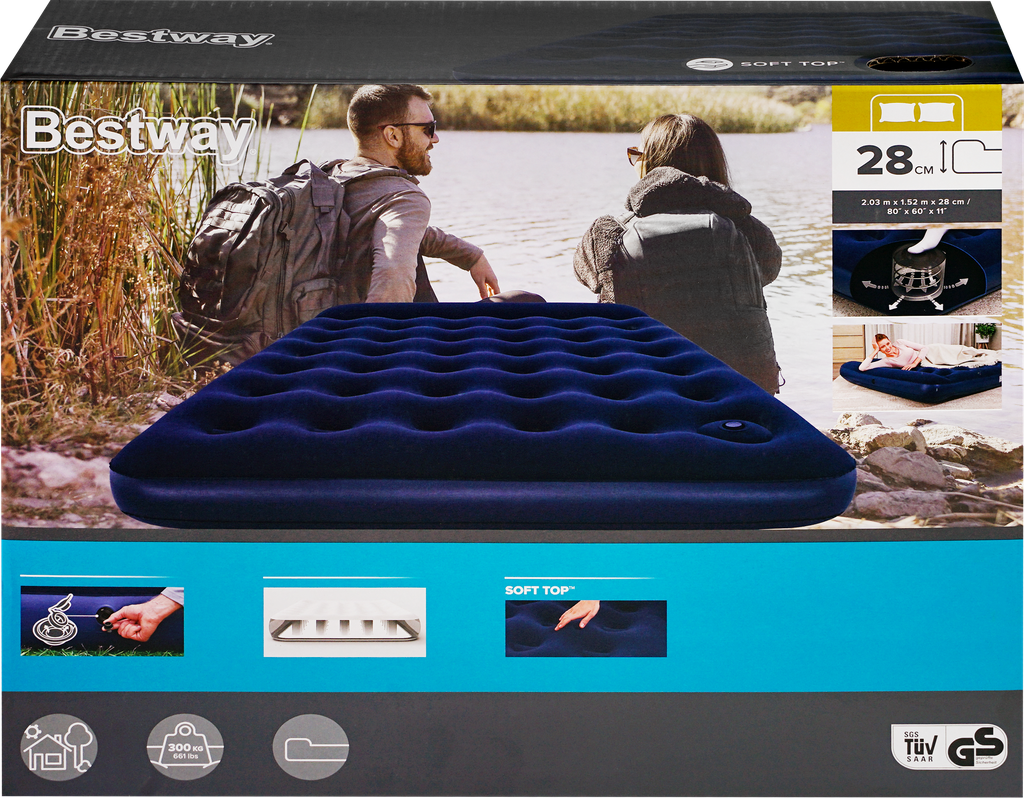 Надувной матрас 152х203х28см, встр.ножной насос, до 300кг