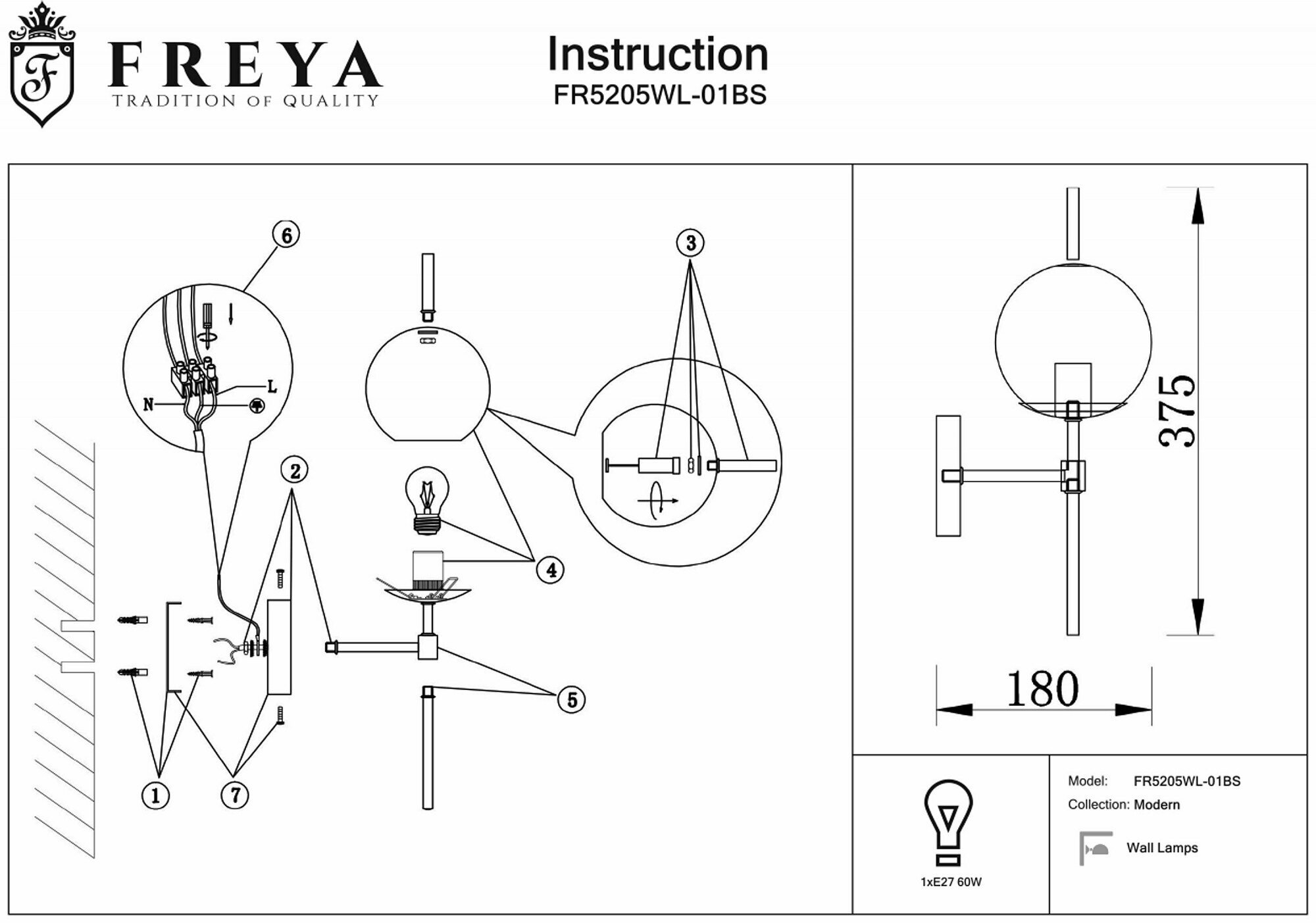 Freya Настенный светильник (бра) Freya Modern FR5205WL-01BS