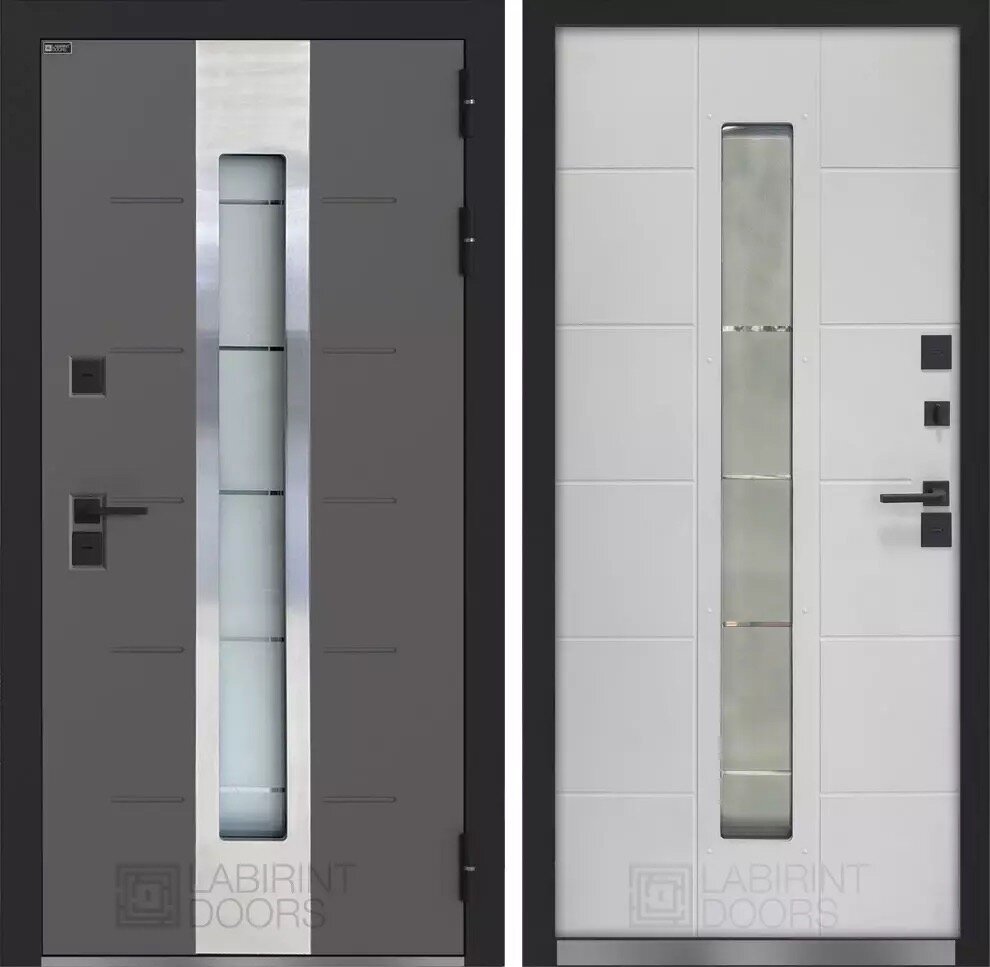 Входная дверь Labirint Лайн WHITE с зеркалом Фацет 960x2050, открывание левое