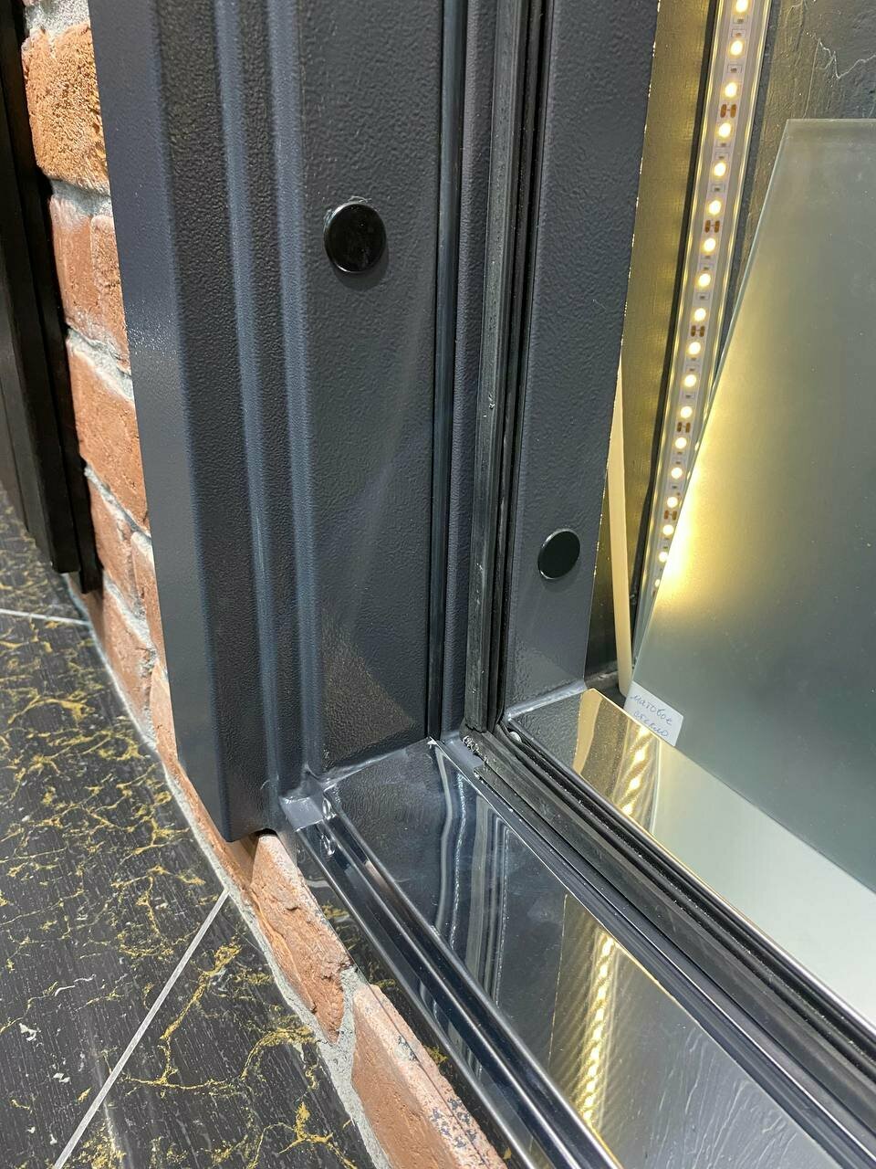 | Дополнительная информация | 3 контура (1 магнитный) уплотнения, терморазрыв -Полиамидный профиль 7 мм по всему периметру полотна и короба двери, замки: Сувальдный Гардиан 3011, Сувальдный Гардиан 3001, Стеклопакет 4-х камерный 81 мм, стекло 4 мм матовое с прозрачными полосками |