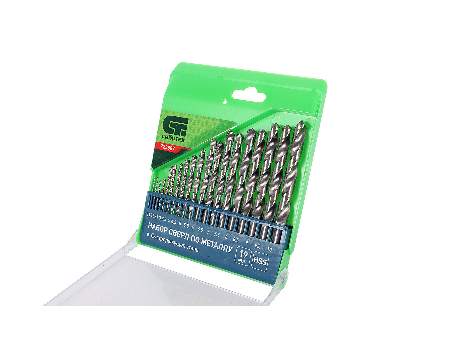 Набор сверл по металлу Сибртех 1-10 мм (через 0, 5 мм), HSS, 19 шт, пластик. коробка цил. хвостовик 723887