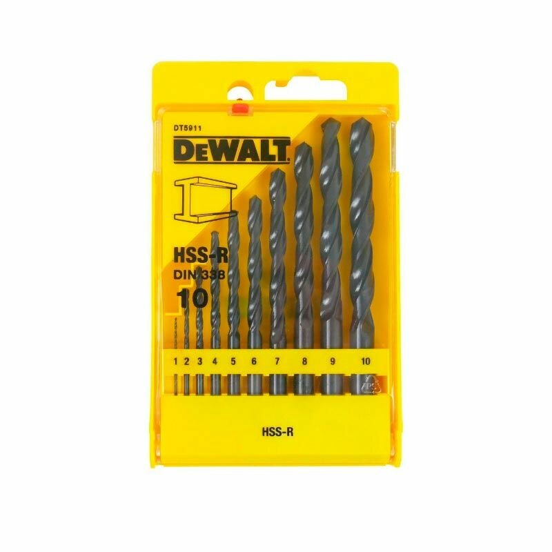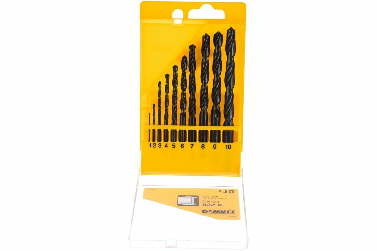 Набор сверл по металлу в пластиковой кассете 10 шт. (1-10 мм; HSS-R)/древесина/пластмасса/DEWALT DT5911-QZ