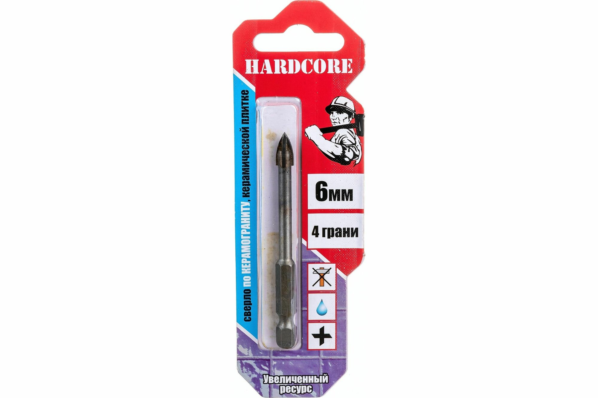 Hardcore Сверло по керамограниту и керам.плитке 6мм 4 грани 151006