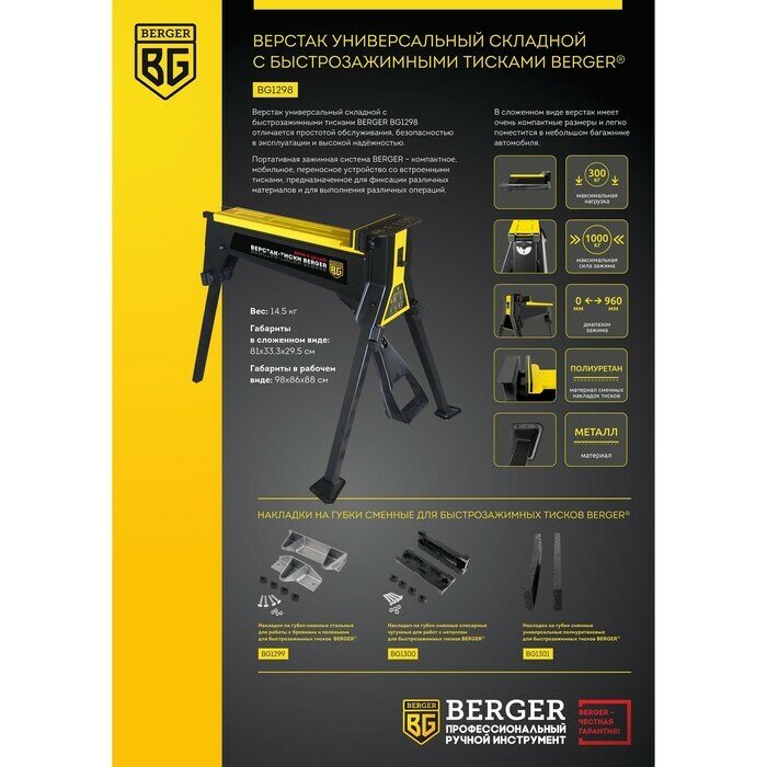 Верстак-тиски BERGER BG1298 универсальный складной с быстрозажимными тисками интересное: