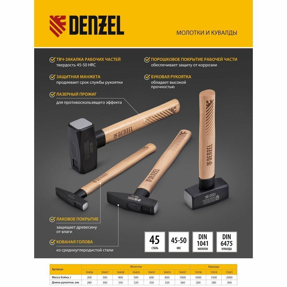 Denzel Молоток слесарный, 800 г, кованый квадратный боек, буковая рукоятка 10435