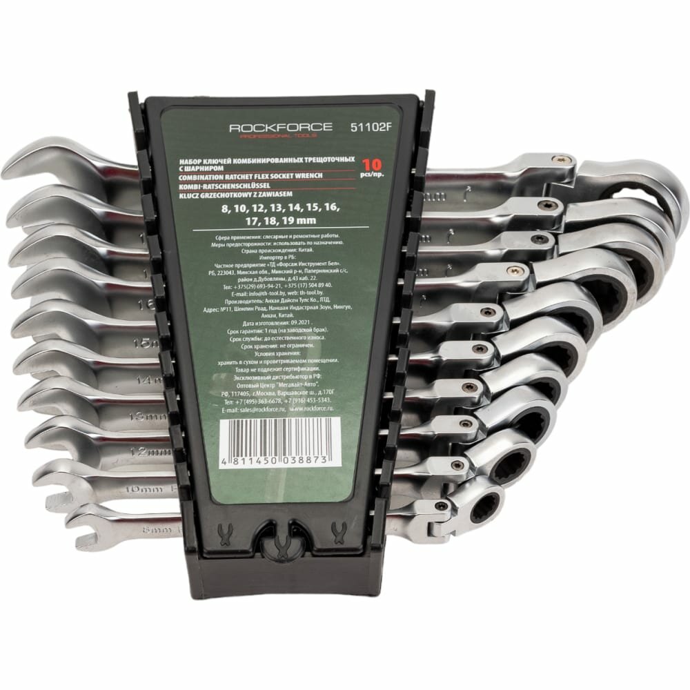 Набор ключей комбинированных трещоточных с шарниром 10 предметов ROCKFORCE интересное: