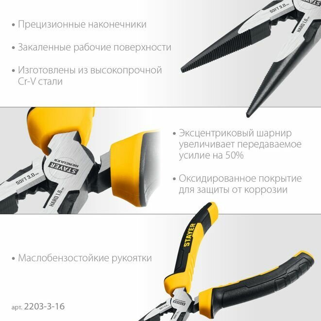 Тонкогубцы STAYER Hercules 200 мм, 2203-3-20_z03
