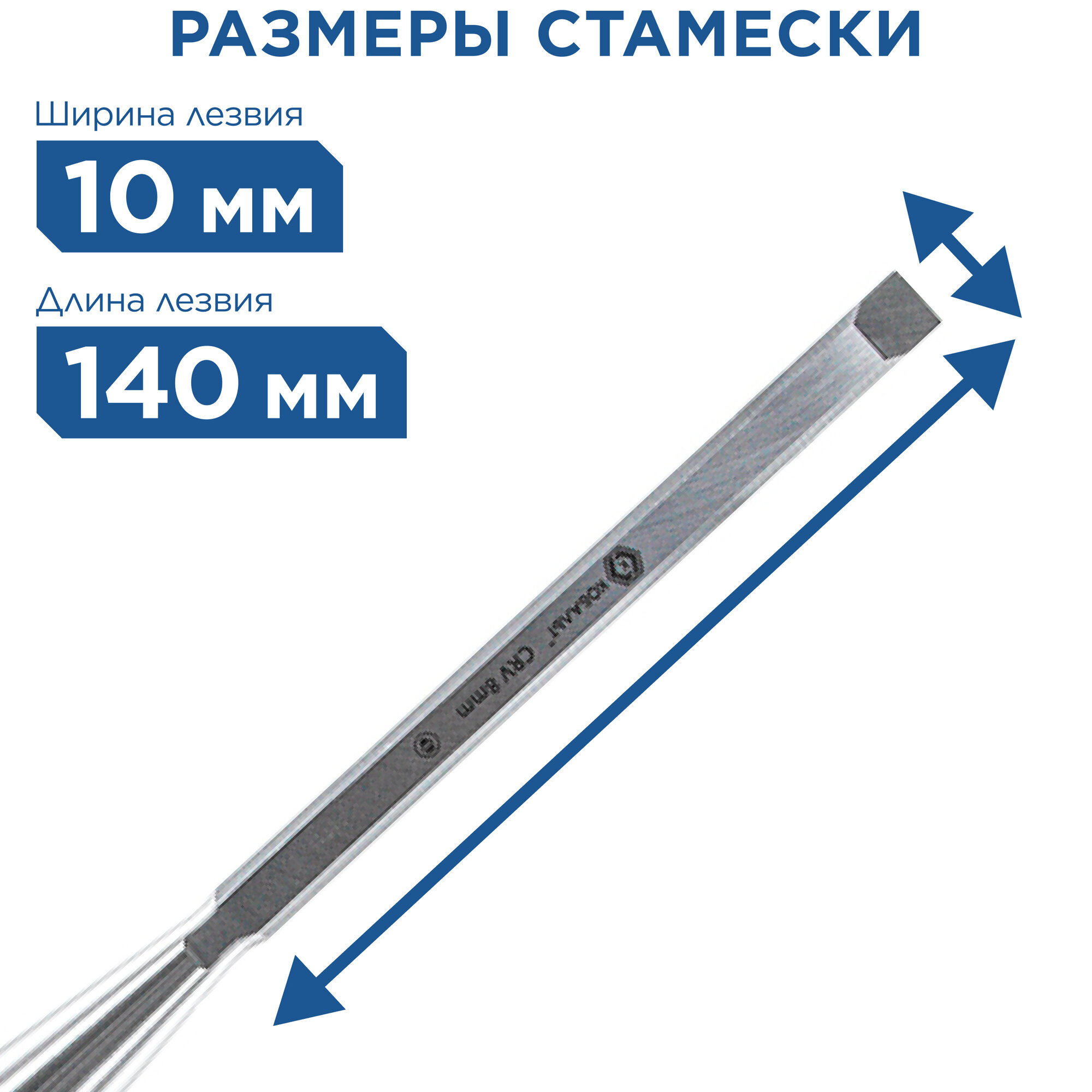 Стамеска плоская кобальт 8 х 140 мм, CR-V, двухкомпонентная рукоятка (1 шт.) блистер (1 шт., блистер)