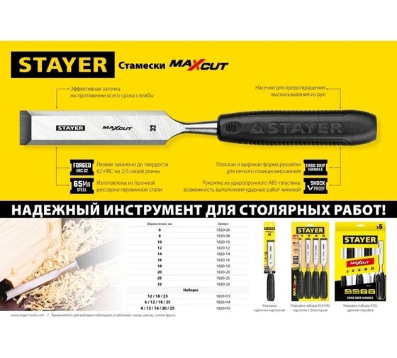 Ниже Вы можете прочитать отзывы на Набор стамесок STAYER Max-Cut 5 предм. 1820-H5, ознакомится с подробными характеристиками, посмотреть интересные обзоры и фотографии на Набор стамесок STAYER Max-Cut 5 предм. 1820-H5.