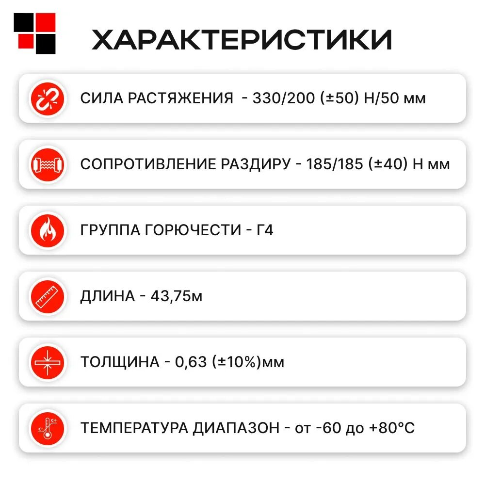 | Прочность на разрыв продольная | 330 Н/5 см |