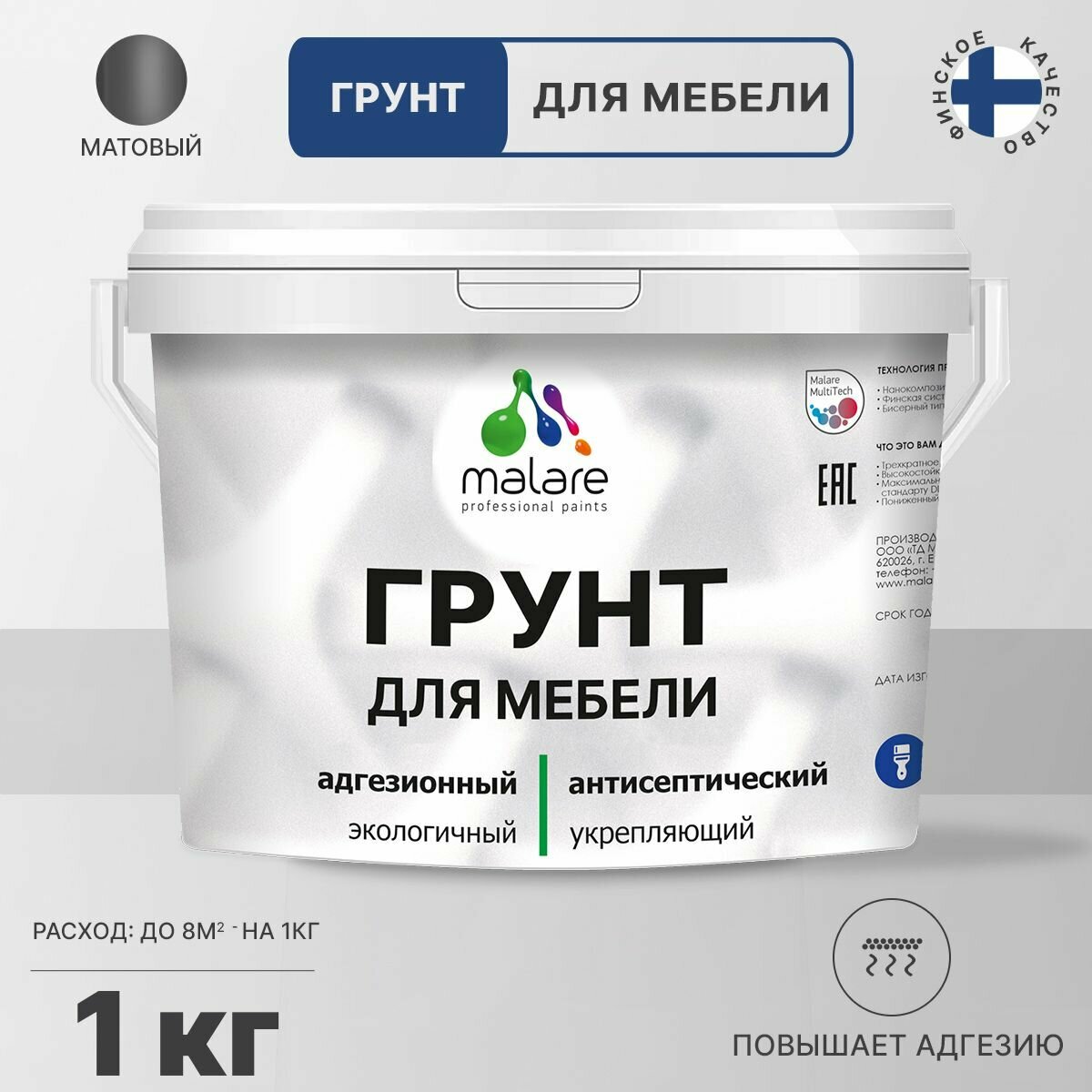 Грунт для мебели Malare акриловый адгезионный укрепляющий быстросохнущий без запаха, белый, 1 кг.