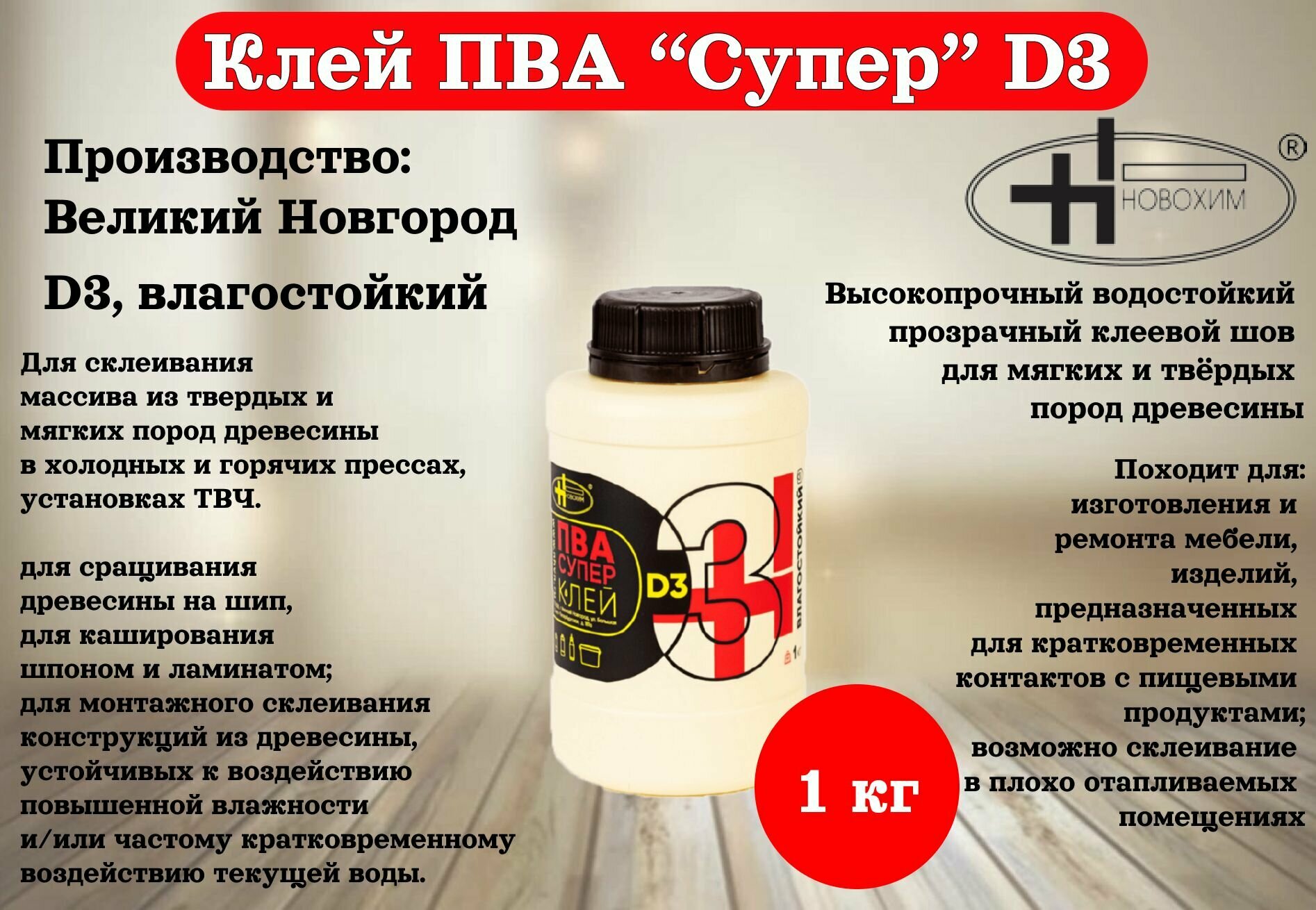Клей ПВА Новохим Д3 Супер, 0,5 кг