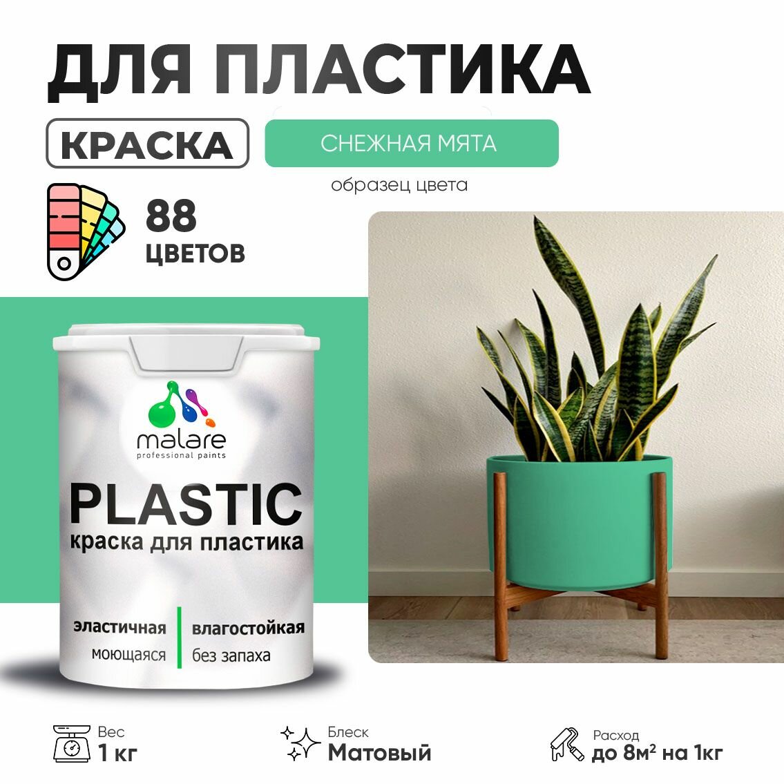 Купить Акриловая краска для пластика Malare Plastic для пенопласта ПВХ сайдинга, для подоконников и откосов, быстросохнущая без запаха, матовая, снежная мята, 1 кг