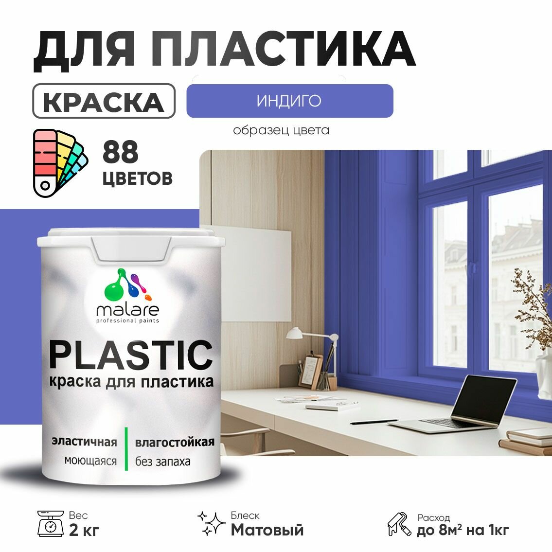 Купить Акриловая краска для пластика Malare Plastic для пенопласта ПВХ сайдинга, для подоконников и откосов, быстросохнущая без запаха, матовая, индиго, 2 кг