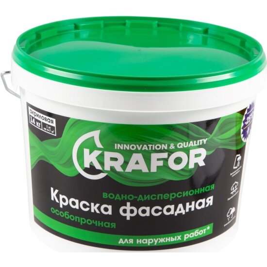 Краска водно-дисперсионная фасадная особопрочная Krafor , 1,5 кг, белая