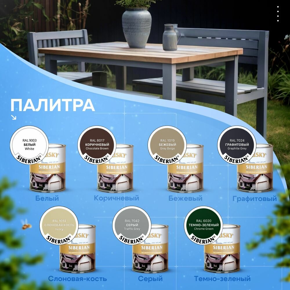 Краска для дерева акриловая полуматовая, HUSKY SIBERIAN 0,9 л Серый RAL 7042, с натуральным воском, для наружных и внутренних работ