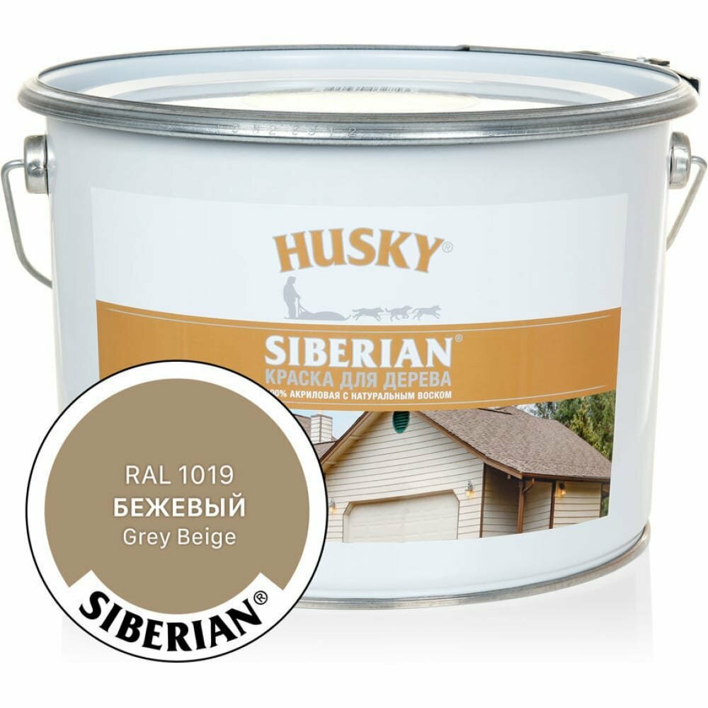 Купить Краска для дерева акриловая полуматовая, HUSKY SIBERIAN 9л Бежевый RAL 1019, с натуральным воском, для наружных и внутренних работ