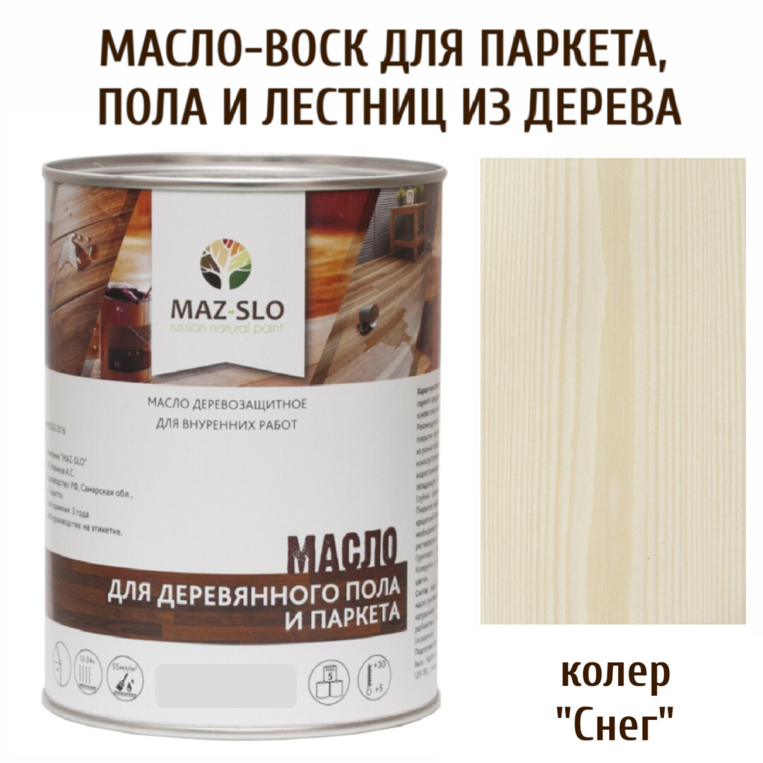 СохранитьМасло для деревянного пола, паркета, лестниц MAZ-SLO, цвет "Снег", 1 литр, уф-защита интересное: