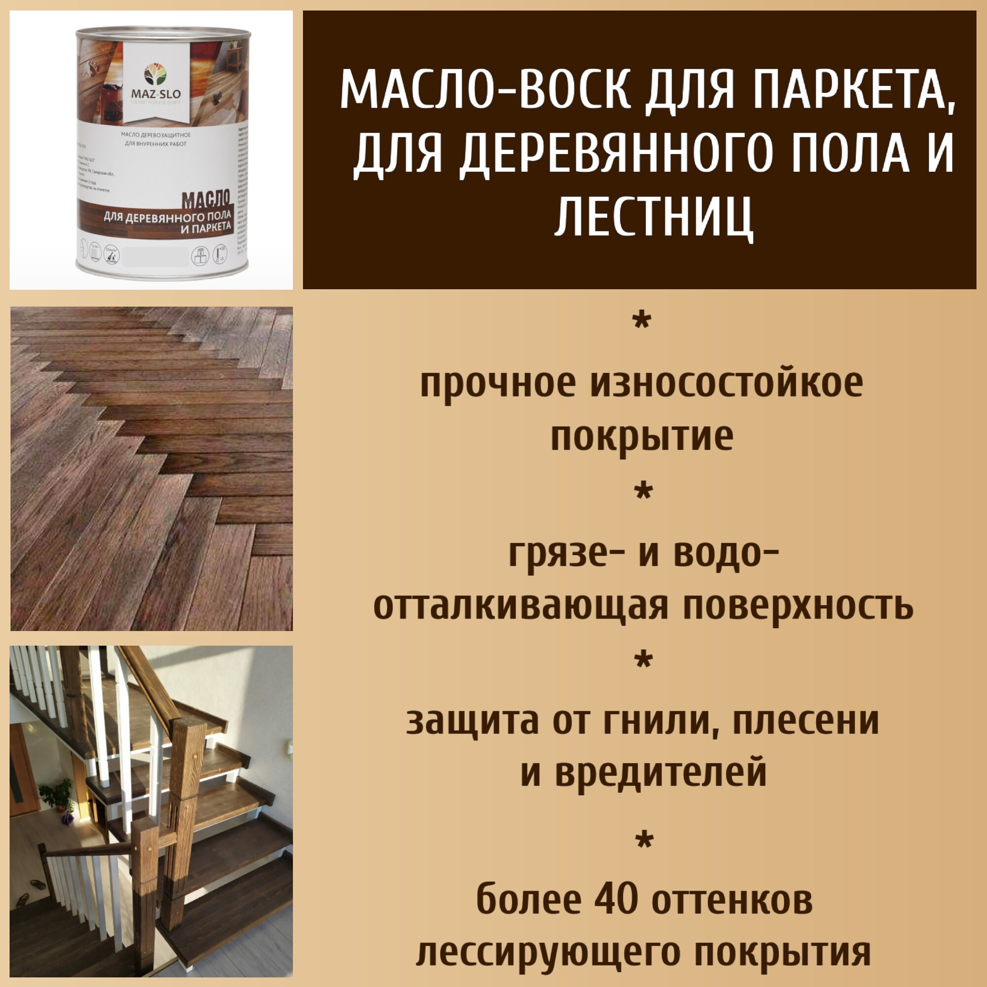 СохранитьМасло для деревянного пола, паркета, лестниц MAZ-SLO цвет "Изумруд", 1 литр интересное: