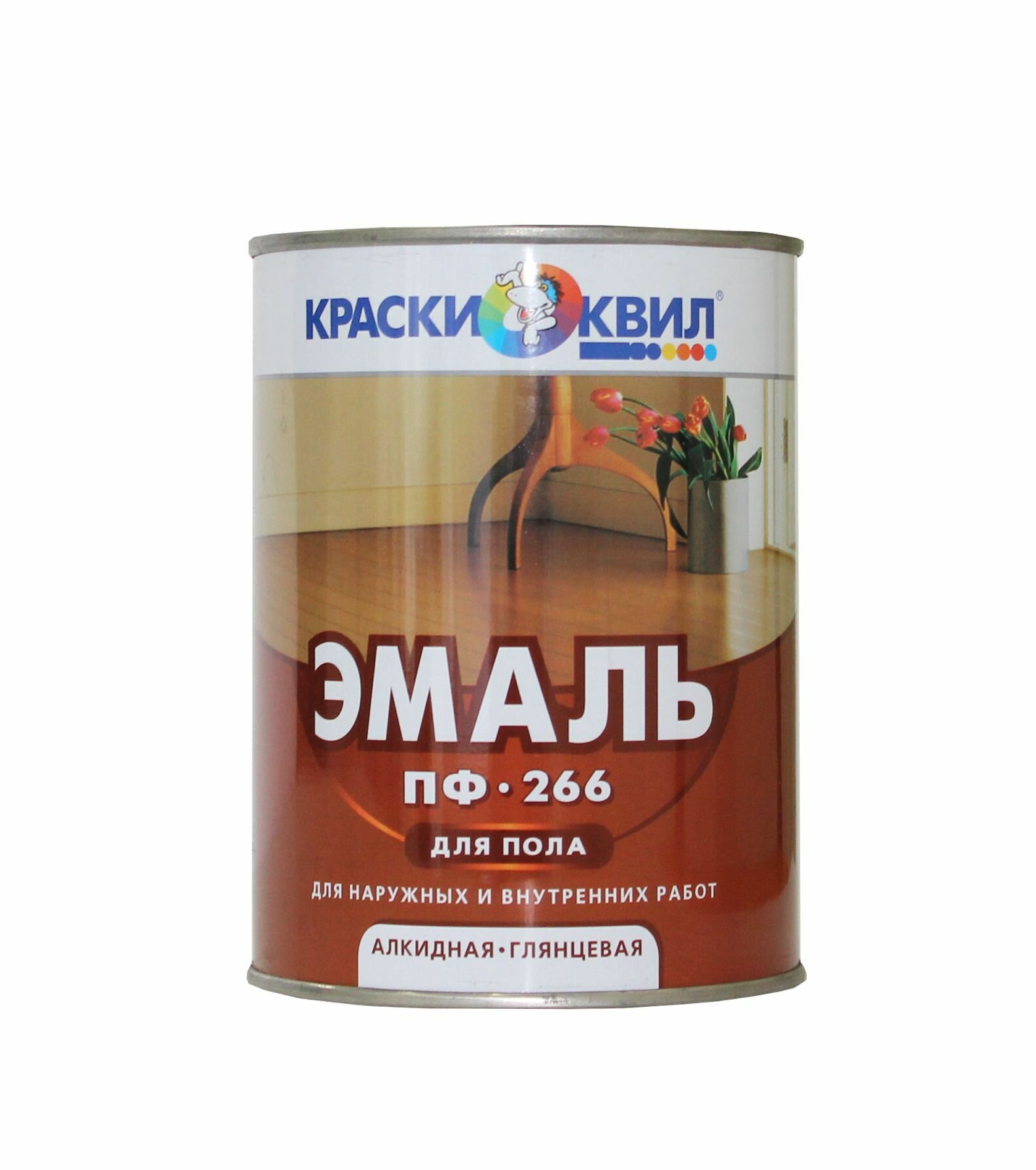 Краски КВИЛ Эмаль ПФ-266 / для пола, моющаяся, быстросохнущая / Глянцевый, Красно-коричневый, 0,9 кг
