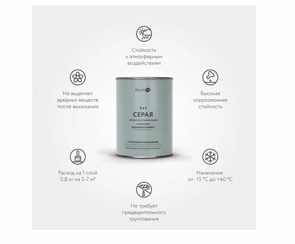 Купить Грунт-эмаль по ржавчине 3в1 Elcon cерая RAL 7040 матовая 0,8 кг