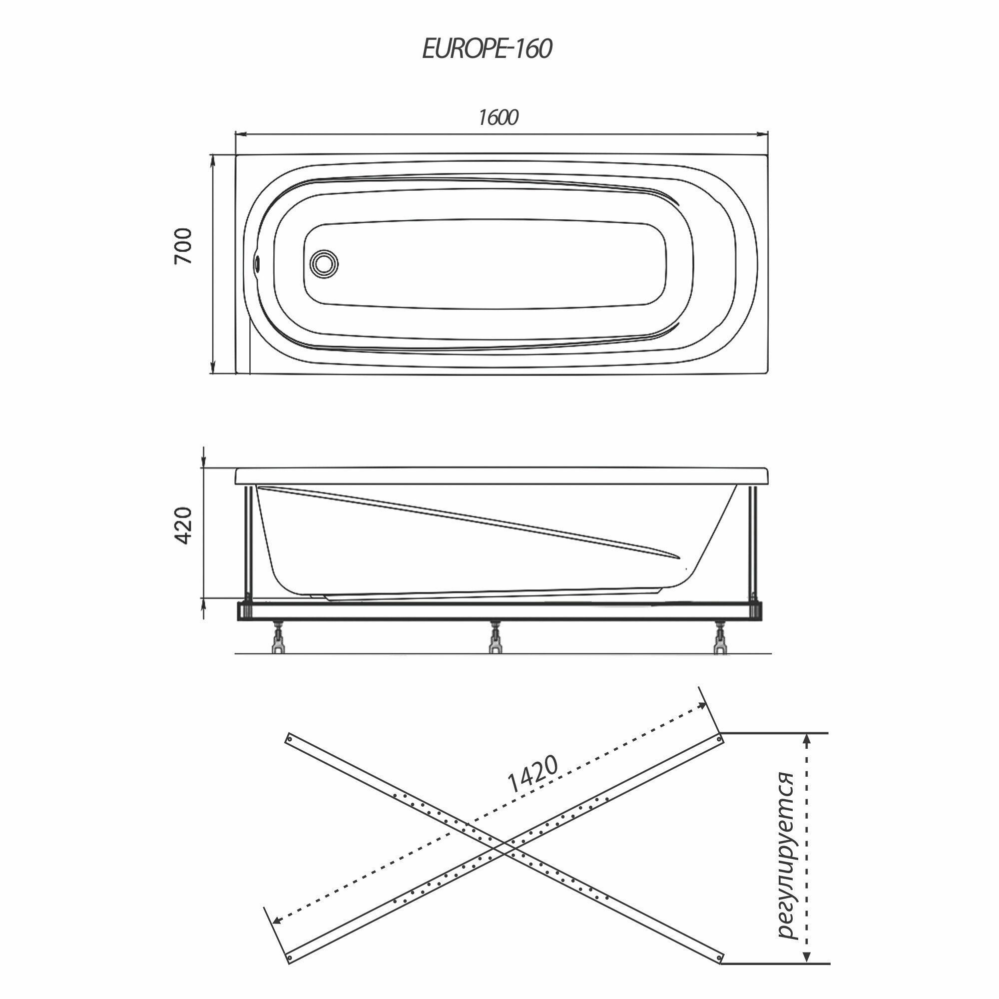 Купить Ванна акриловая прямоугольная 1ACreal Европа 160х70 белая