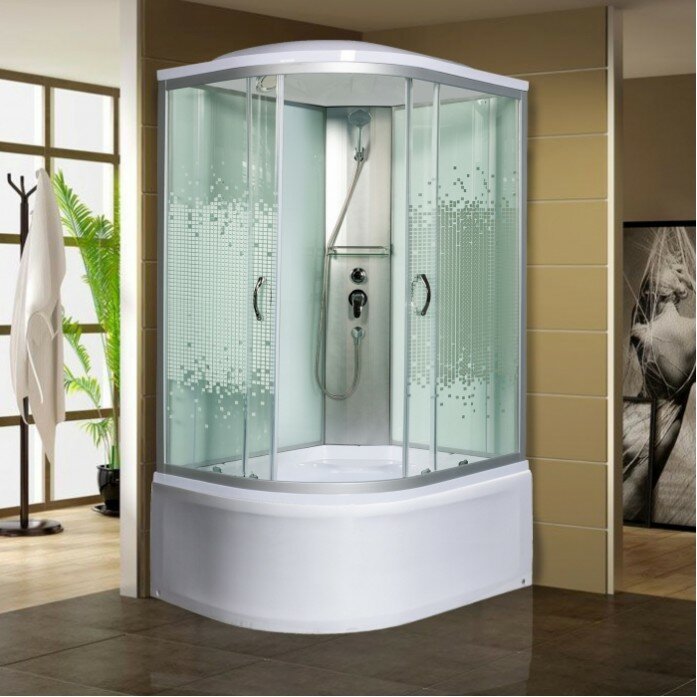 | Комплектация | душевая лейка, зеркало, поддон, полки, сиденье |