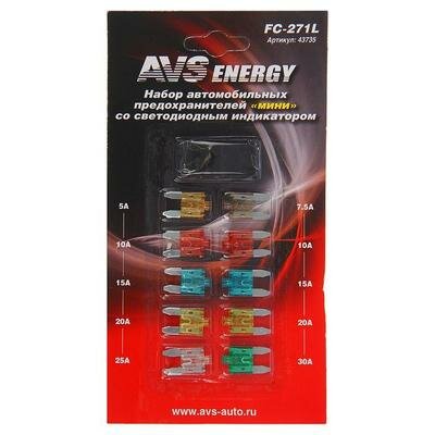 Предохранители AVS FC-271L, "мини", 5-30 А, со светодиодом, набор 10 шт 1501175 . интересное: