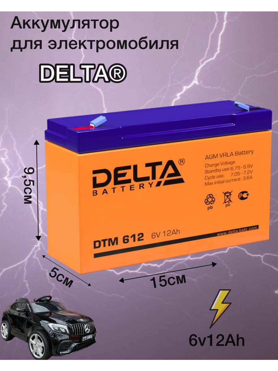 Аккумулятор для электромобиля DELTA DTM 6V12Ah интересное: