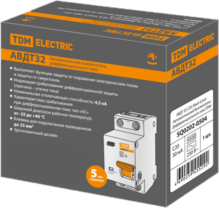 TDM Авдт 32 2P1P+N C20а 30мА 4,5кА тип АС SQ0202-0504 .