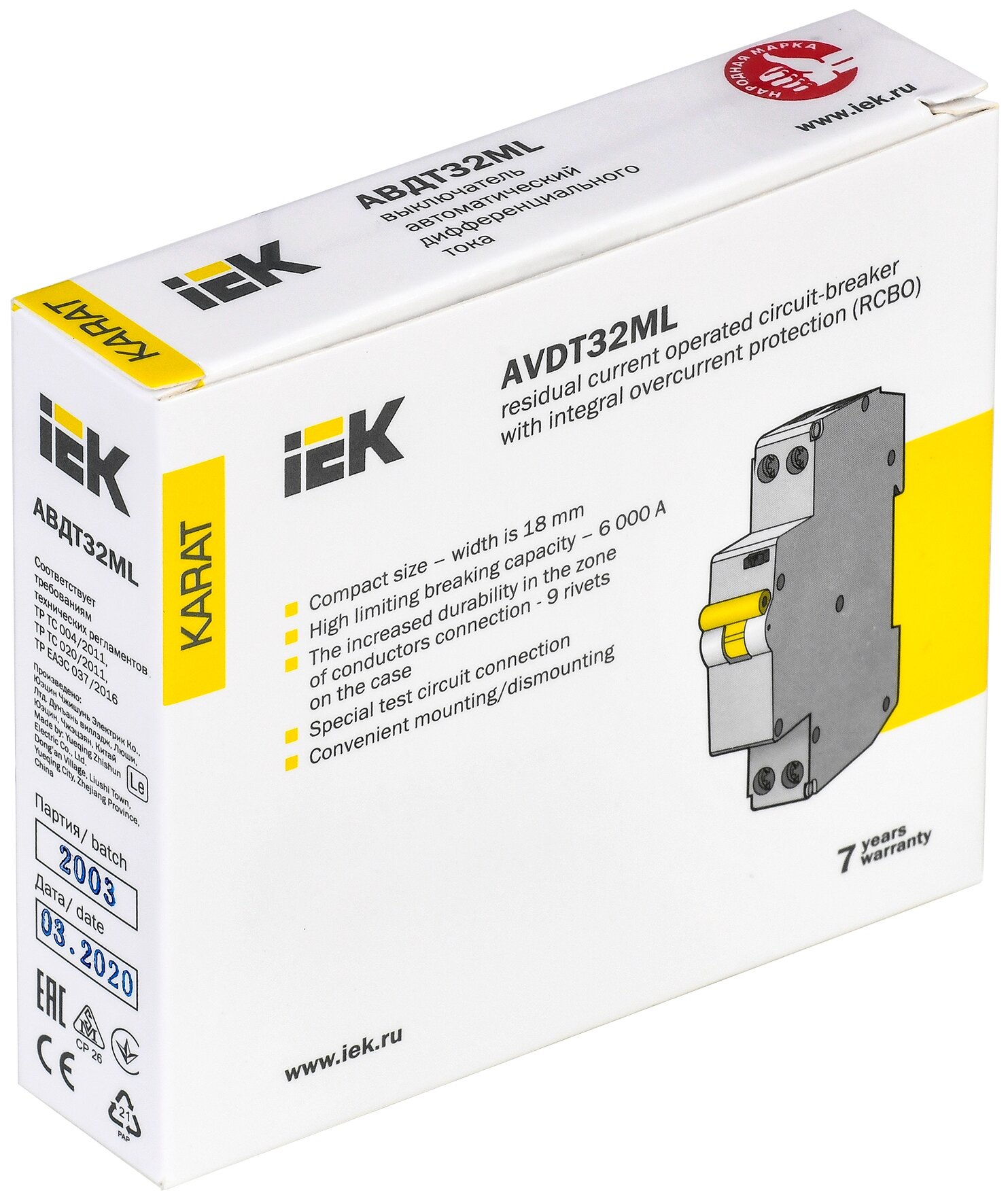 Выключатель автоматический дифференциального тока АВДТ32МL C16 30мА KARAT IEK интересное: