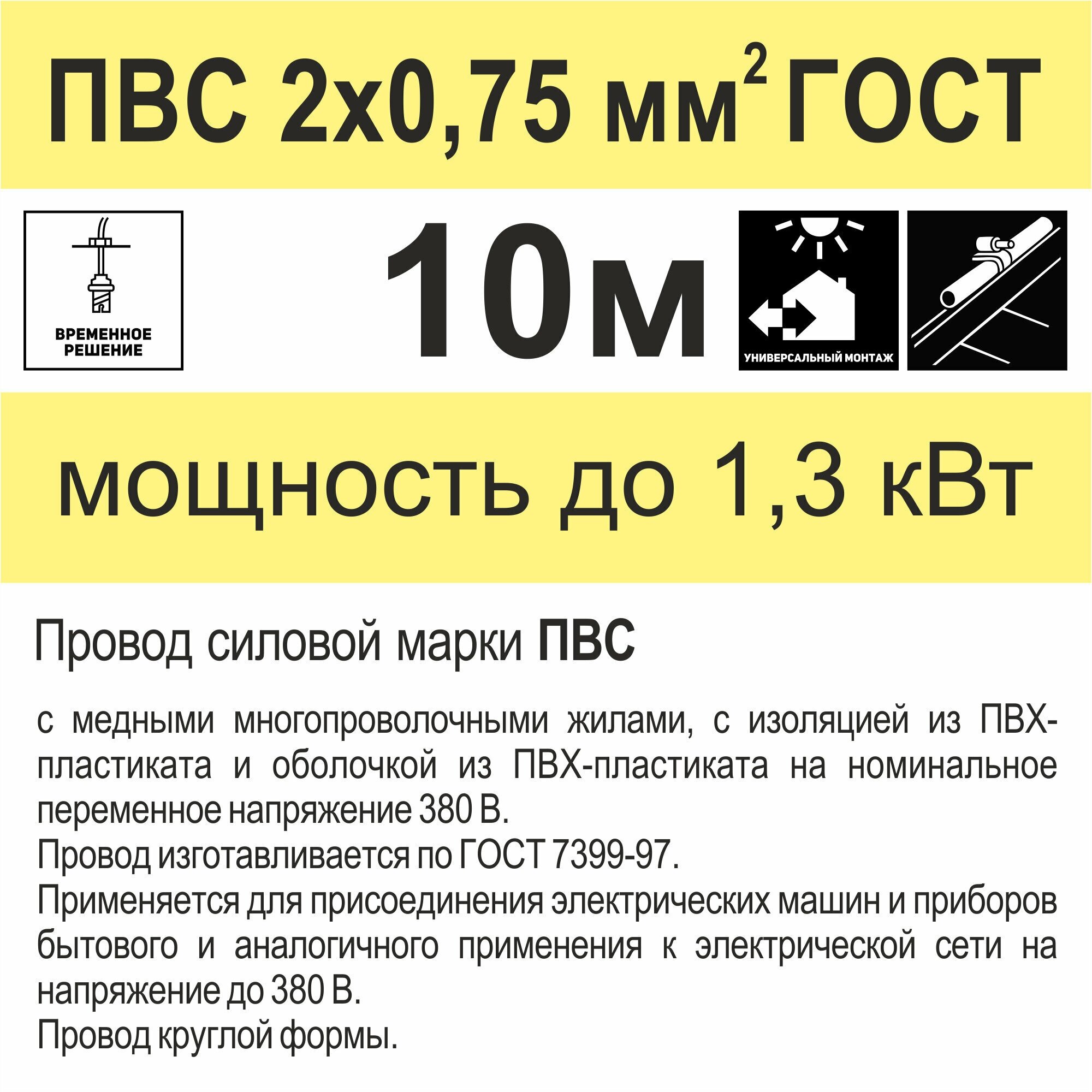 Электрический провод Камкабель ПВС 2 х 0,75 кв.мм, 10 м