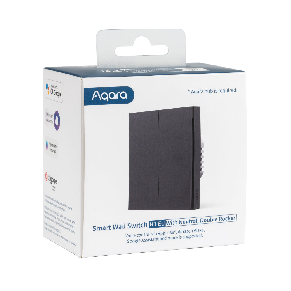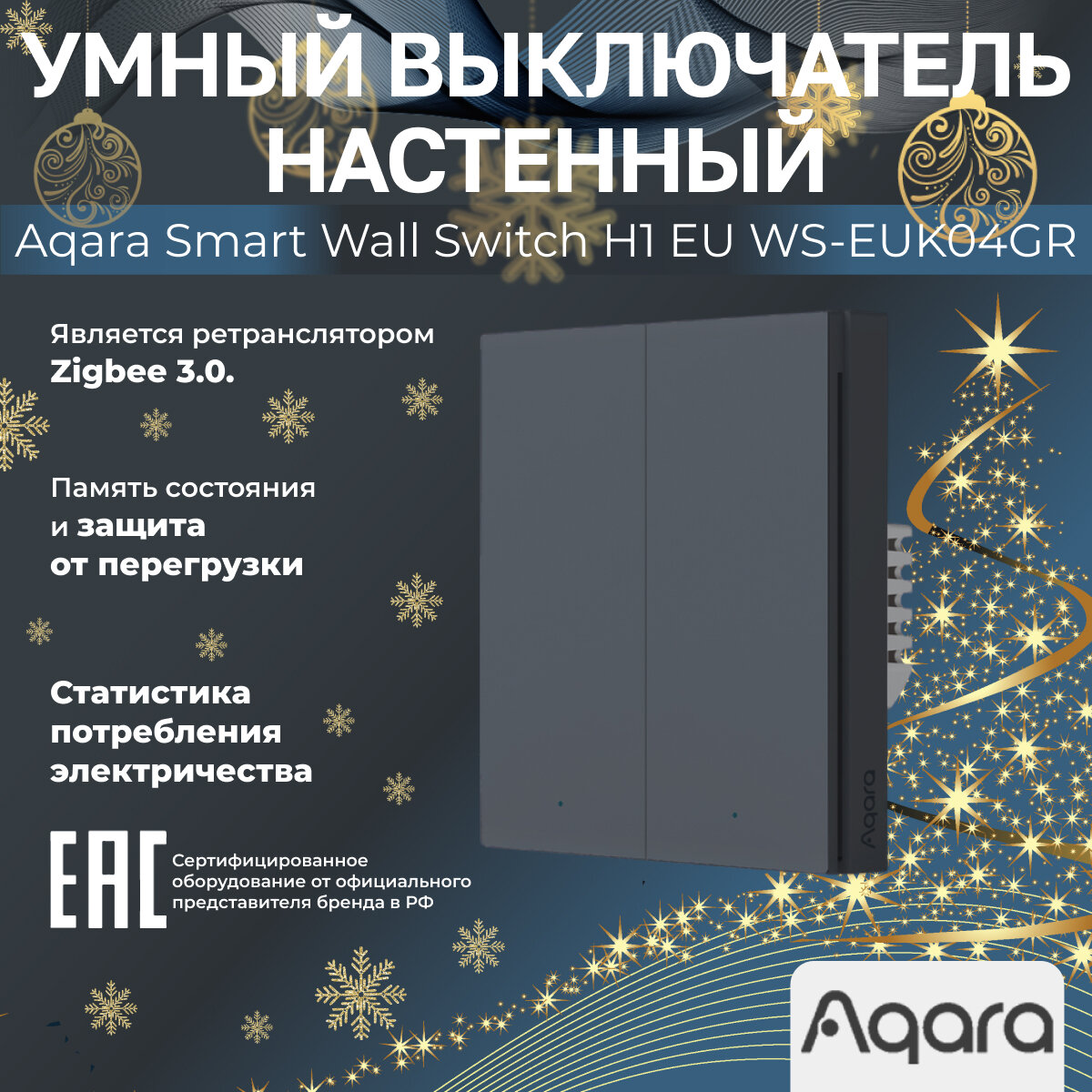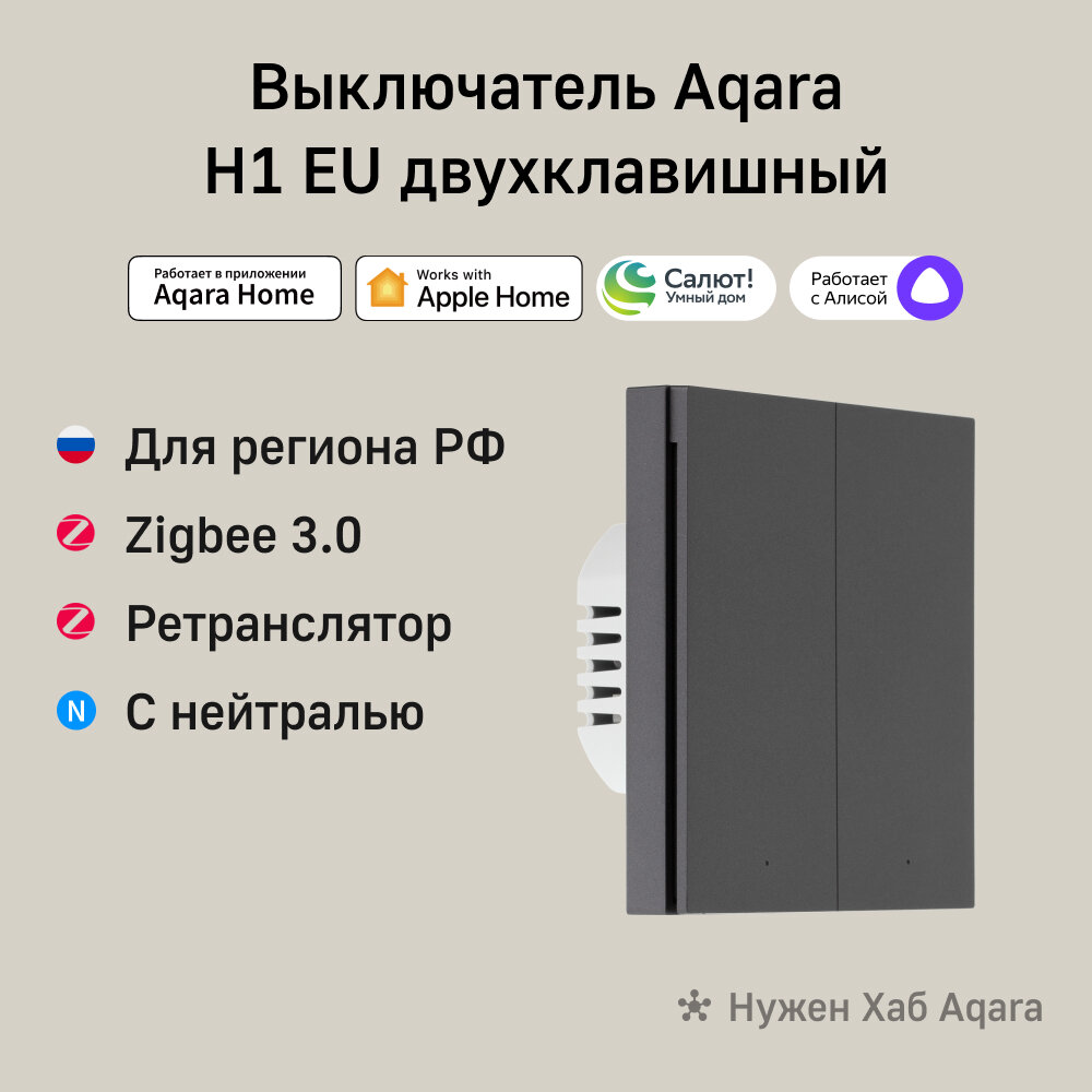 Умный выключатель двухклавишный с нейтралью Aqara H1 WS-EUK04, умный дом, графитовый