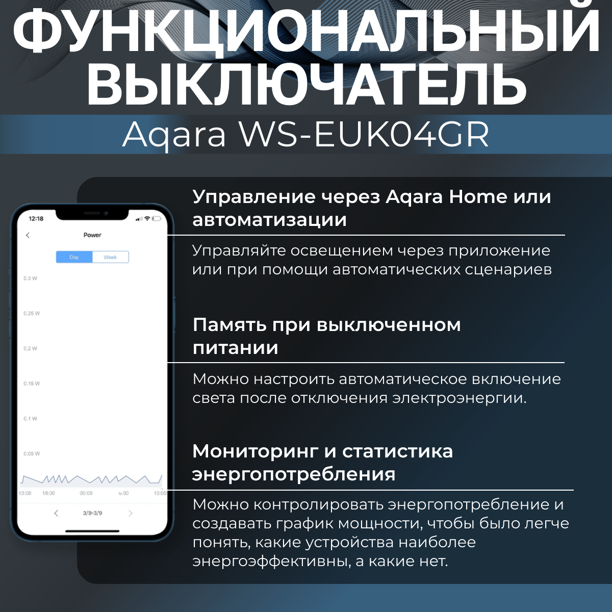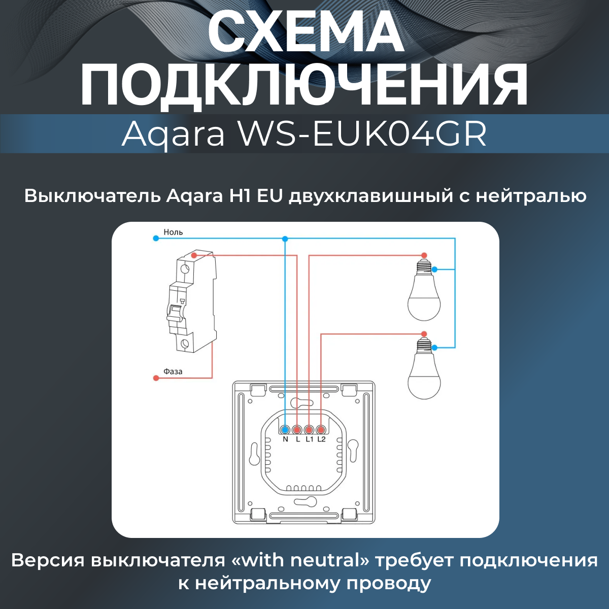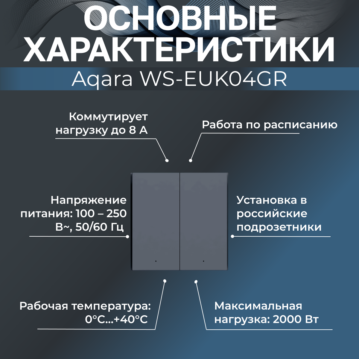 Умный выключатель Aqara WS-EUK04 graphite (2 клавиши, с нейтралью)
