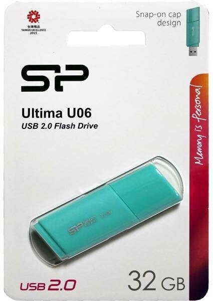 Флеш-память Silicon Power Ultima U06 16Gb/USB 2.0/Бирюзов(SP016GbUF2U06V1B)