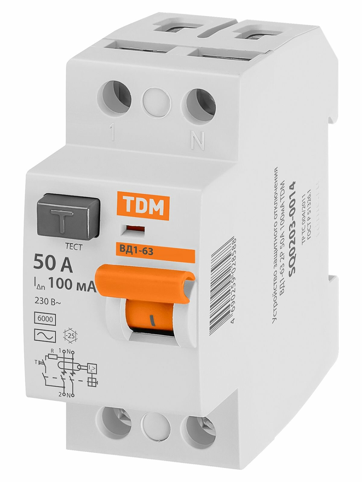 УЗО TDM ELECTRIC 100мА тип АС ВД1-63