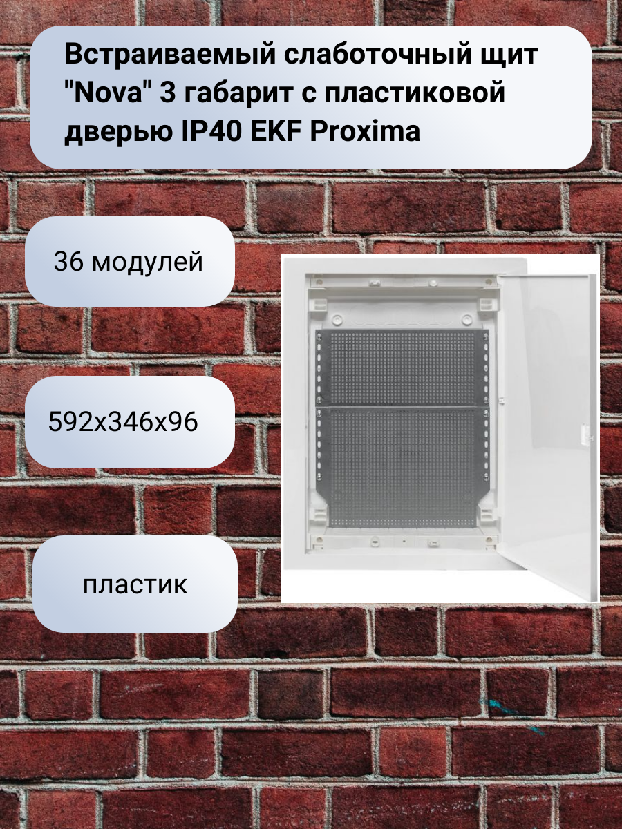 Щит слаботочный встраив. "Nova" 3 габ. с пласт. дверью IP40 PROxima | код. nv-mb-pd-3 | EKF ( 1шт. )
