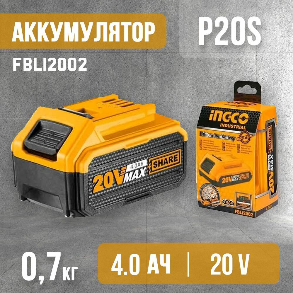 Аккумулятор Ingco FBLI2002 20 В 4 Ач интересное: