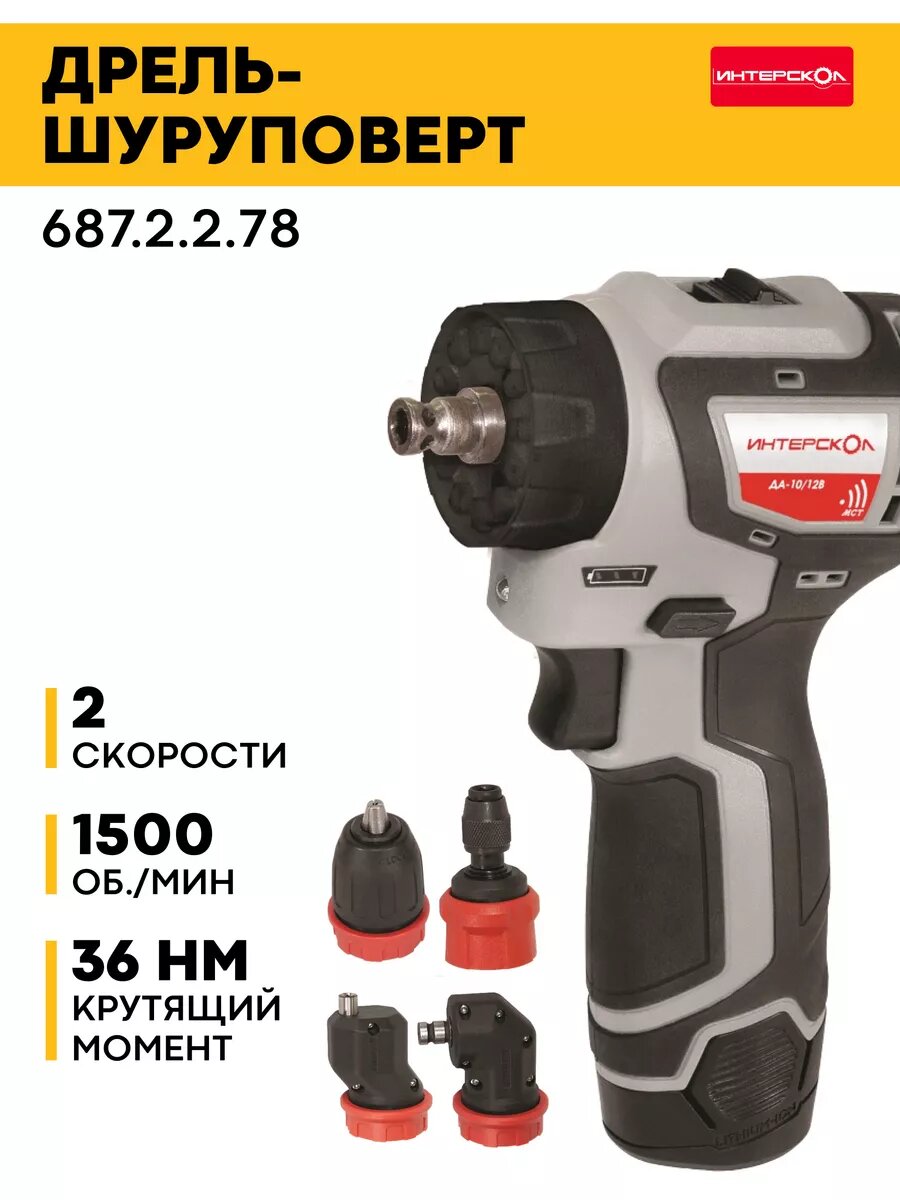 Дрель-шуруповерт аккумуляторная Интерскол ДА-10/12В 36 12В 2Ач Li-Ion 2 АКБ и ЗУ (687.2.2.78)