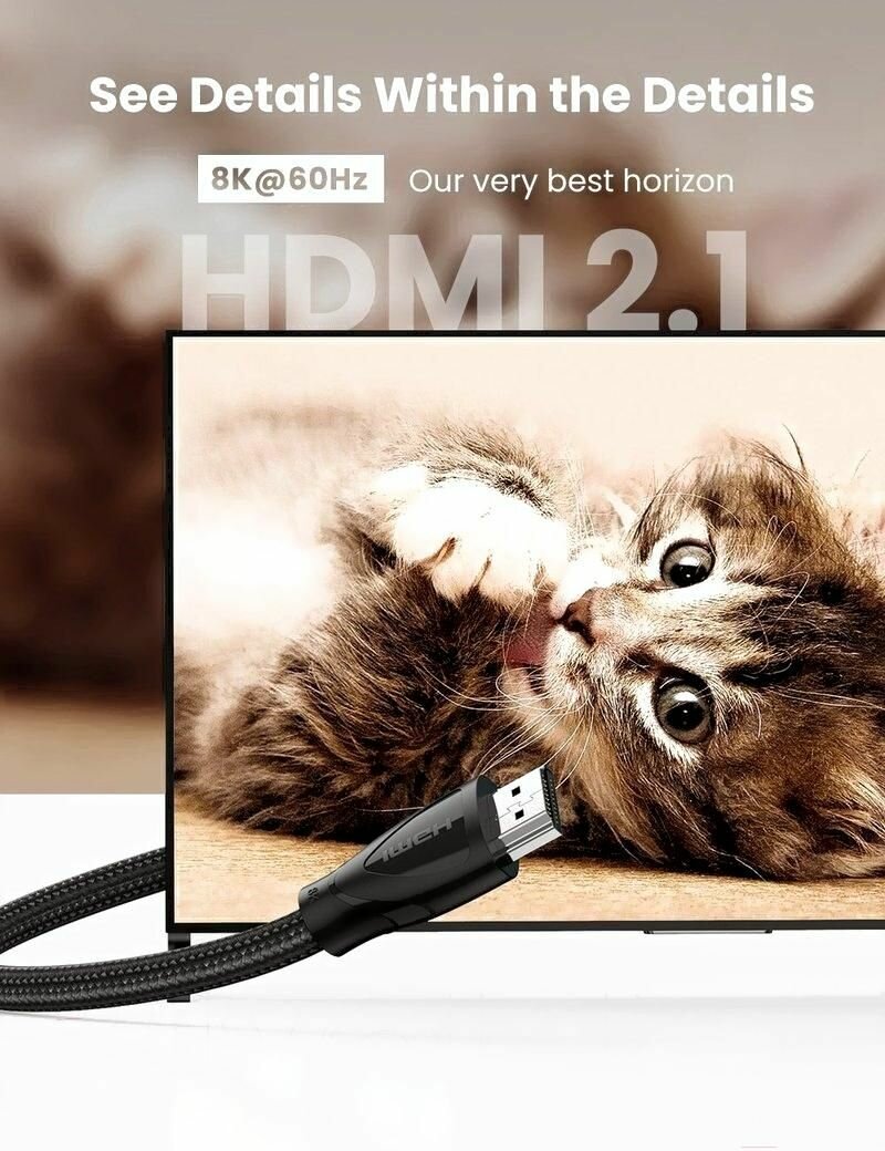 Кабель UGreen HDMI-HDMI 2.1 / 8K 60Гц / 4K 120Гц, цинковый сплав, нейлоновая оплётка, 2 метра