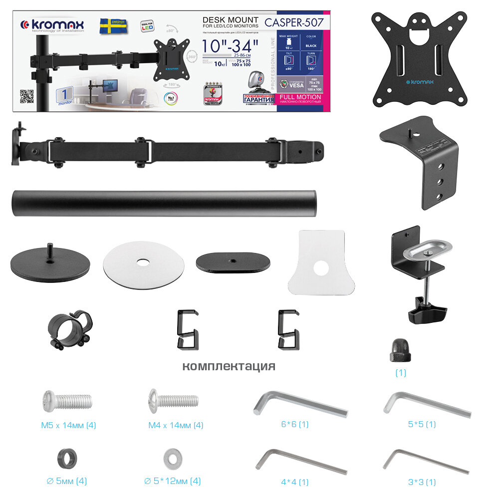 СохранитьКронштейн для монитора Kromax CASPER-507 (90420) черный для ТВ 10"-34" интересное: