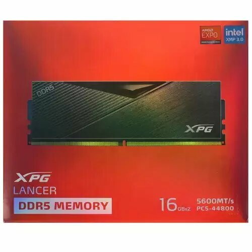 Модуль памяти ADATA 32 Гб XPG Lancer DDR5 RGB 5600MHz 2x16GB CL36-36-36 UDIMM 288-Pins Desktop SDRAM Memory RAM Kit Black Heatsink (AX5U5600C3616G-DCLARBK)