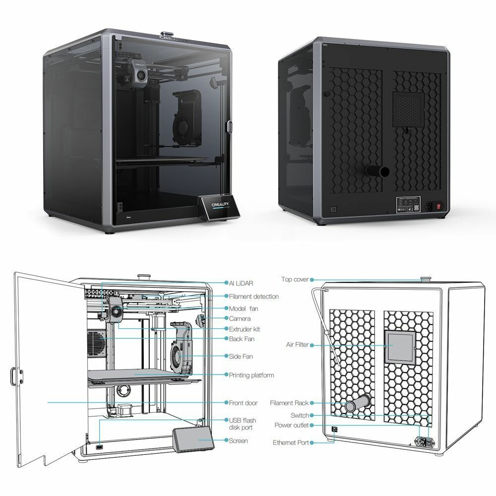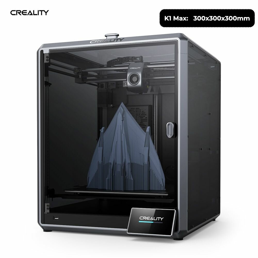 3D принтер K1 Max Creality. Закрытый корпус, С камерой, С экраном 4.3", С PEI Столом, Технология FDM, Рабочая область — — 300×300×300мм, Скорость — — 600мм/с, Автоматическая калибровка, Поддержка USB соединения, WIFI, RJ45