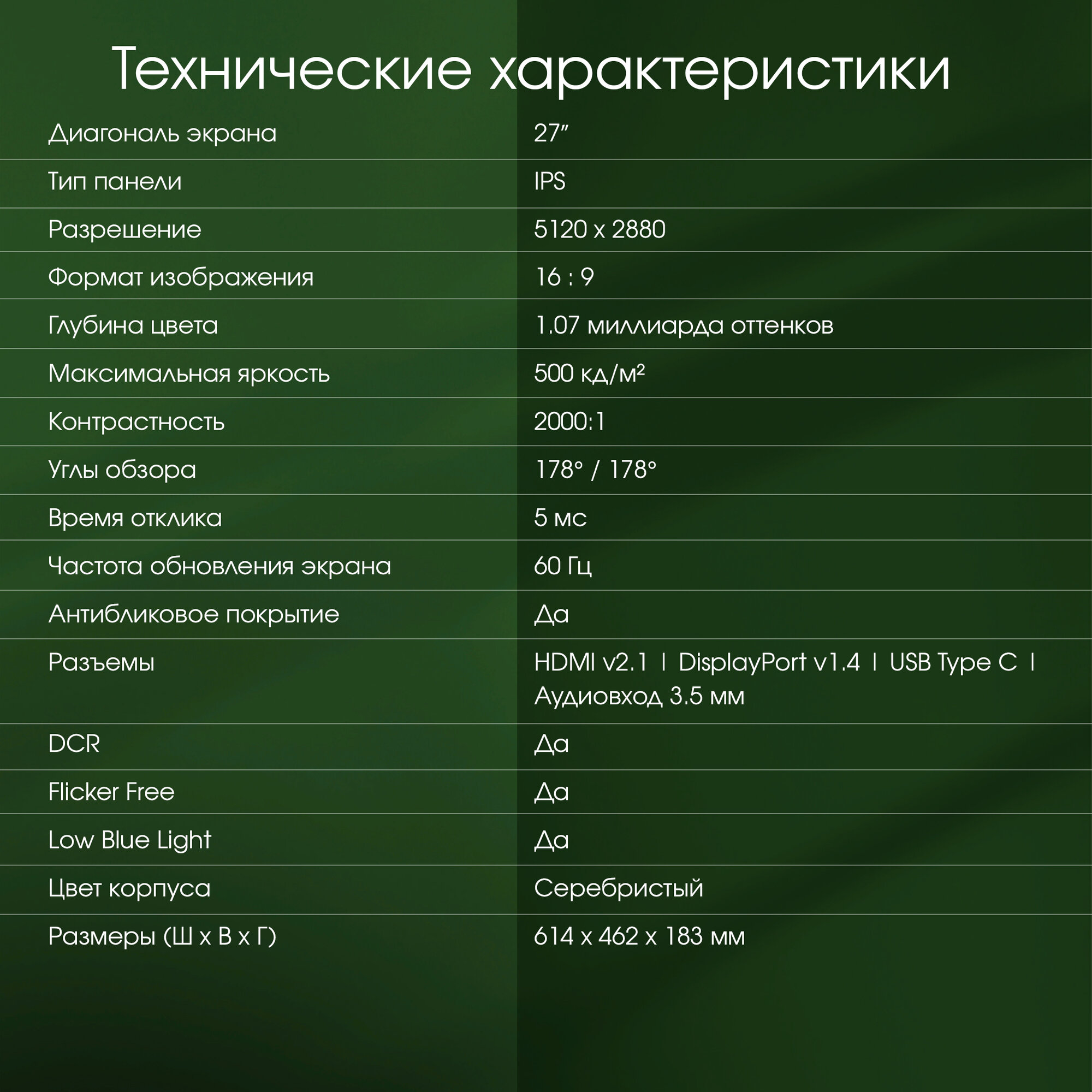 | Вертикальный угол обзора | 178 градусов |